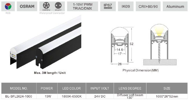 Các thông số kỹ thuật quan trọng của đèn LED Linear bao gồm:
